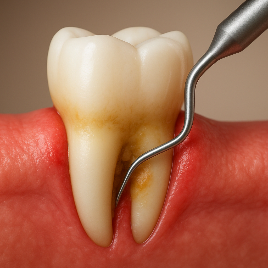 Elimina el sarro acumulado debajo de la encía. - Curetaje o raspado de encías.